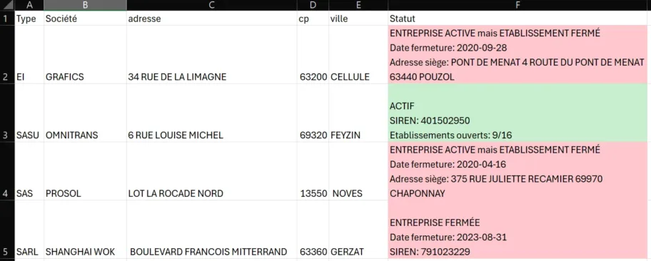 Un outil indispensable pour votre veille commerciale Dans le monde des affaires, connaître le statut actuel de vos prospects ou partenaires commerciaux est essentiel. Une entreprise a-t-elle déménagé ? Est-elle toujours active ? L’établissement que vous connaissez est-il fermé alors que l’entreprise existe ailleurs ? Aujourd’hui, nous vous présentons une macro Excel puissante et simple…