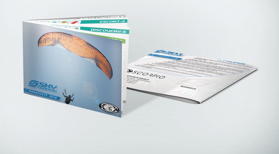 ZoomDétails Catalogue produits parapente Sky Country 2016Graphisme, Mise en page, PrintPar grafics16 août 2016Brochure A5 pelliculage mat soft touch