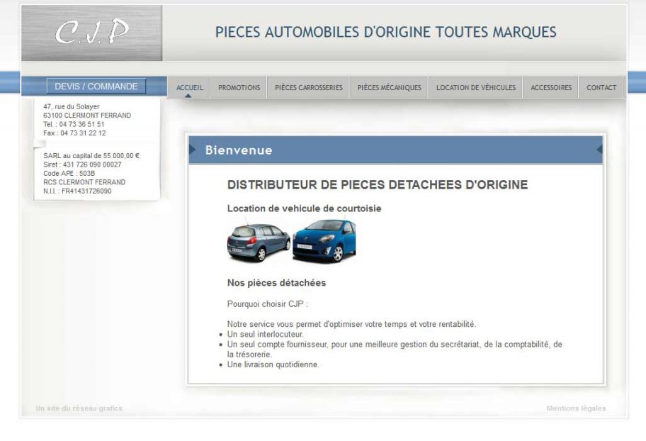 CJPZoomDétails CJP site vitrineInternet, Site internetPar grafics10 décembre 2012Distributeur de pièces détachées d’origine.
